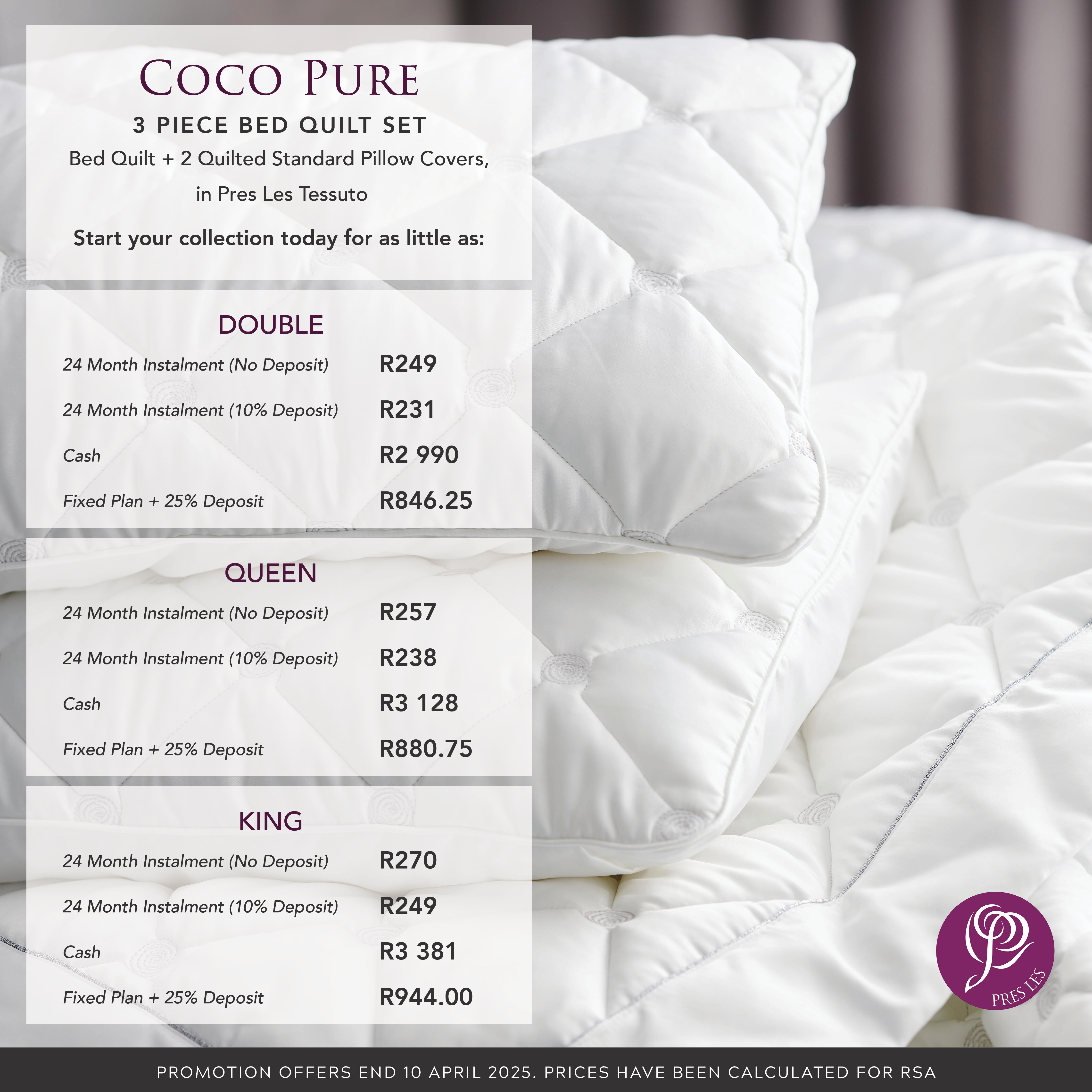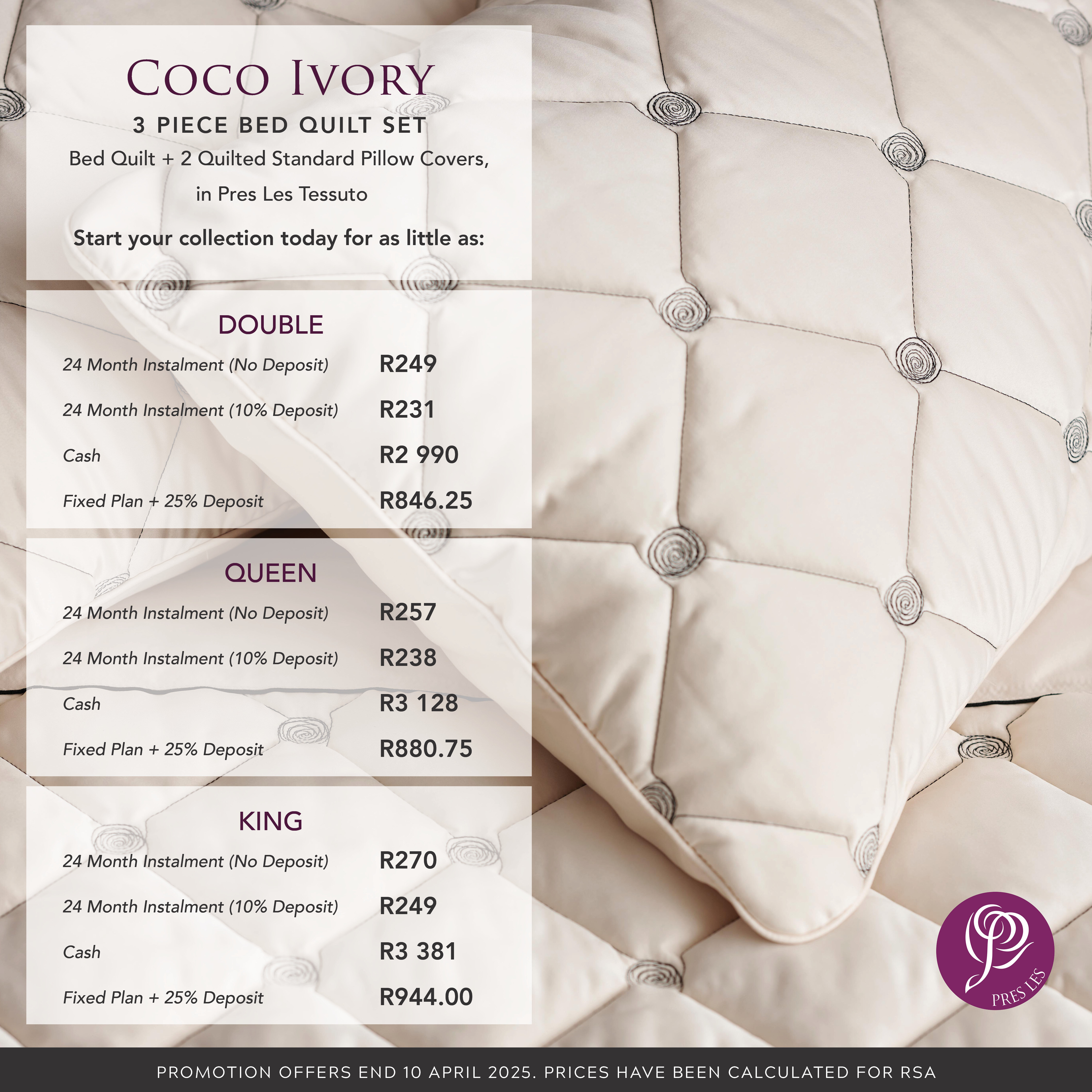 Coco Ivory 3-piece bed quilt set